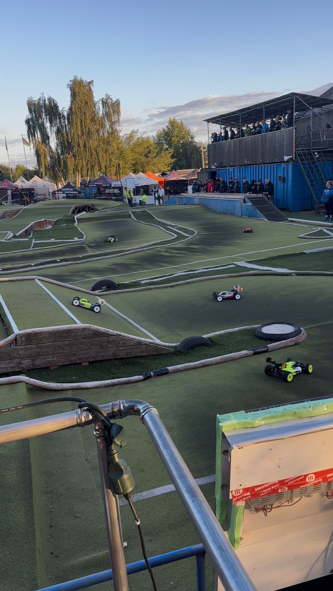 Ein Überdachtes Fahrerlager mit Strom und einem Kompressor ist vorhanden.